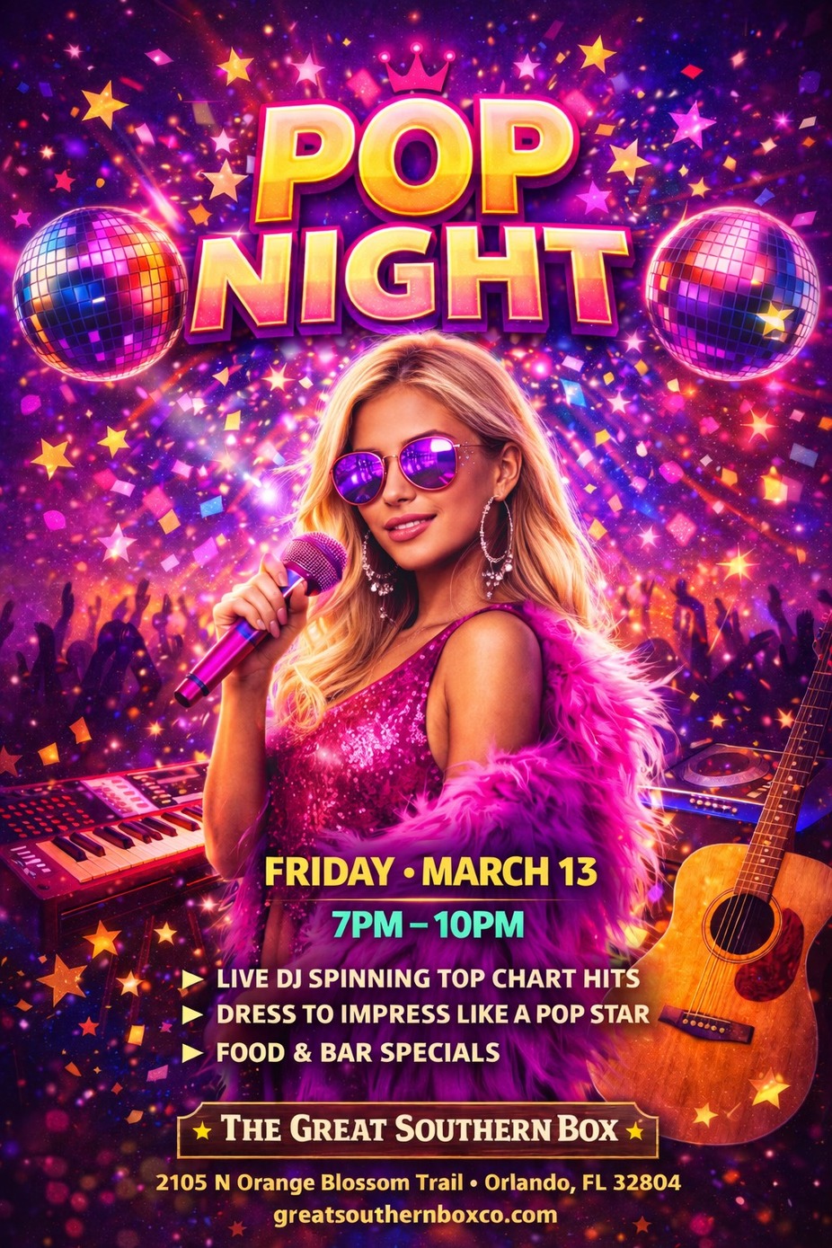 #PopNight #OrlandoEvents #OrlandoNightlife #GreatSouthernBox #FoodHallFun #DanceParty #Top40Hits #FridayVibes