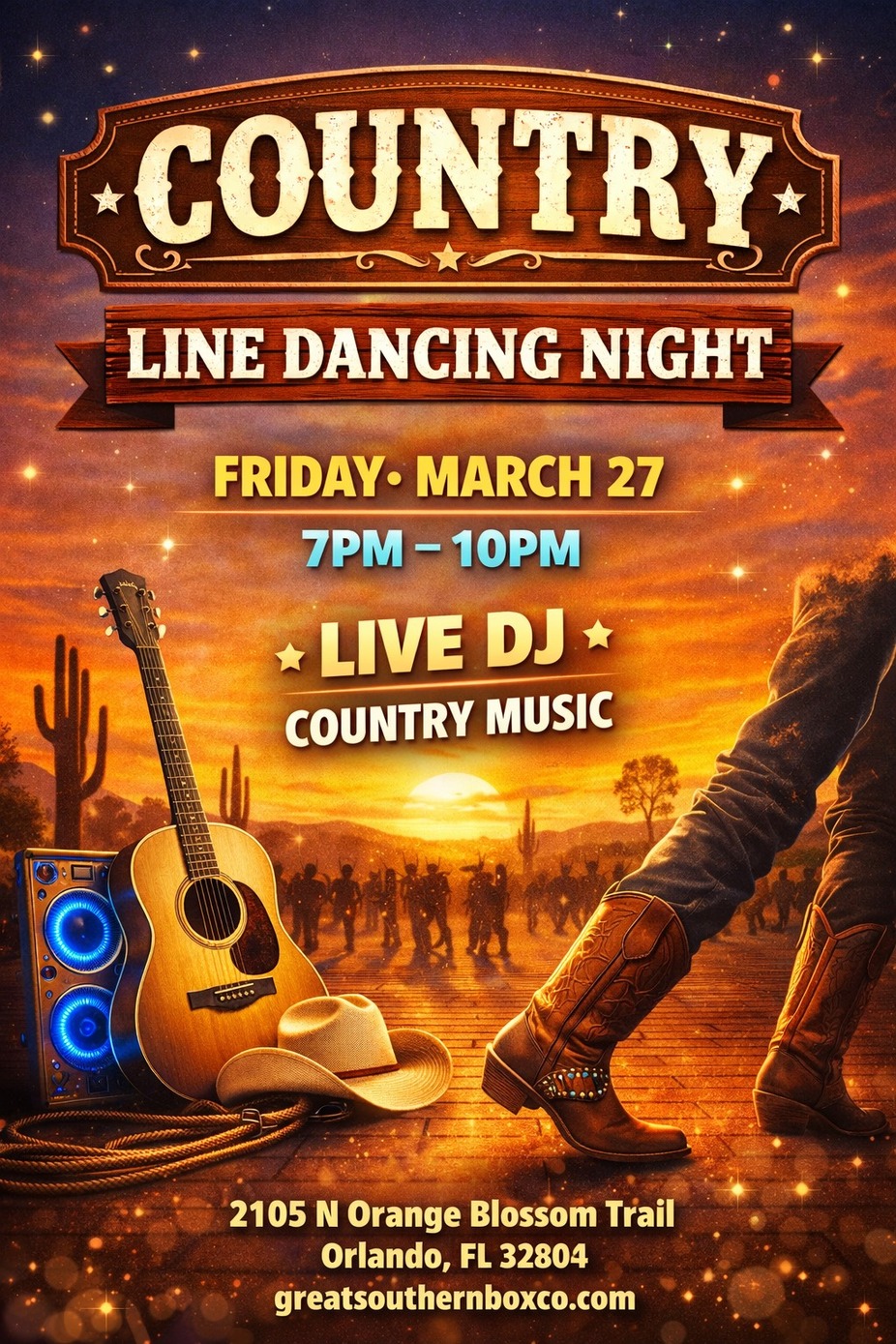 #CountryNight #LineDancing #OrlandoEvents #BootScootin #GreatSouthernBox #OrlandoNightlife #Yeehaw